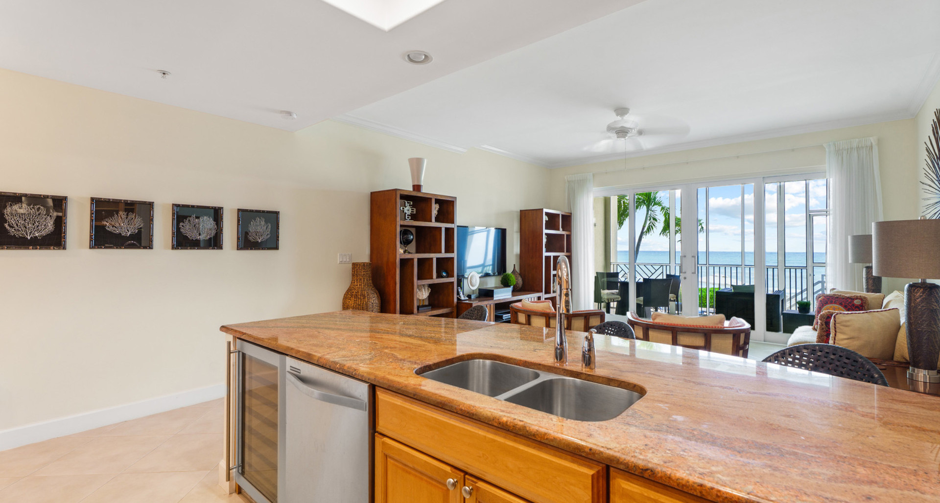 Step into paradise with this stunning 2-bedroom, 2-bathroom condo at South Bay Beach Club, located directly on the world-renowned Seven Mile Beach. Boasting 1,342 sq. ft. of open, light-filled living space, this residence offers sweeping Caribbean Sea views and seamless indoor-outdoor living with a spacious screened patio perfect for sunsets and ocean breezes.